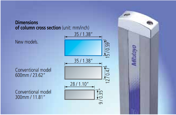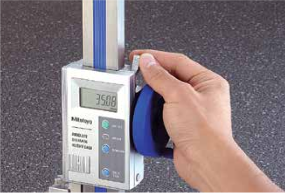 • Smooth up/down displacement is ensured with the slider feed wheel identical with that of proven double-column height gages.