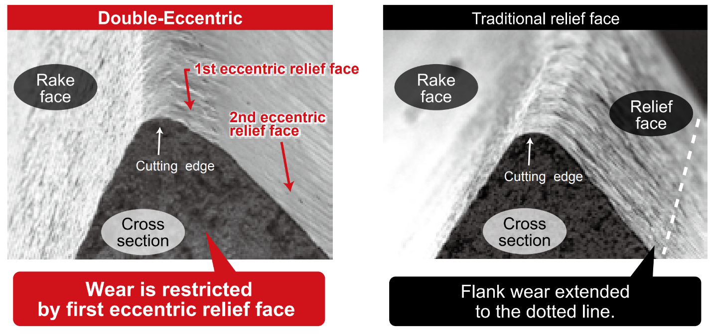 3.Improving chipping-resistance & wear-resistance by double-eccentric relief face.