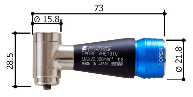 Larger diameter gears are adopted to improve durability remarkably from conventional models. Right angle head.