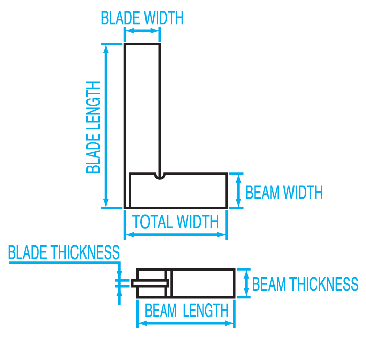 | Order Code | Model No. | Nominal Size (mm) | Blade Length (mm) | Blade Width (mm) | Blade Thickness (mm) | Beam Length (mm) | Beam Width (mm) | Beam Thickness (mm) | Squareness Accuracy (±mm) | Weight |