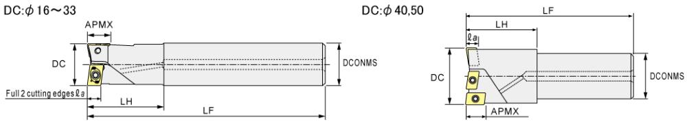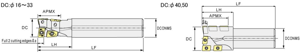 | DC | LF | ℓa | APMX | LH | DCONMS | 底刃用 On end | 外周刃用 On periphery | |||||