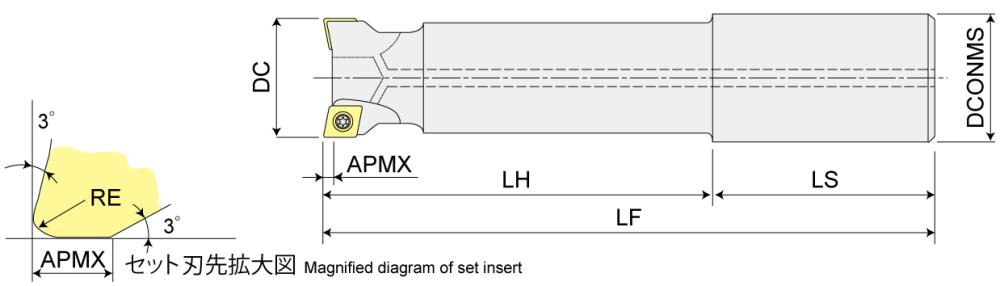 ・ Precision inserts with breakers make high efficient and precision machining from roughing to finishing at vertical.