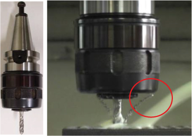 ควรตรวจสอบให้แน่ใจว่า เศษตัด (chips) ไม่ไปกระแทกหรือสัมผัสกับโฮลเดอร์ของต๊าป หรือส่วนอื่น ๆ ของเครื่องจักร เนื่องจากเศษที่พันติดอยู่กับต๊าปหรือเครื่อง อาจทำให้เกิดคมตัดบิ่น (cutting edge chipping) หรือการหักของต๊าป (tap breakage)