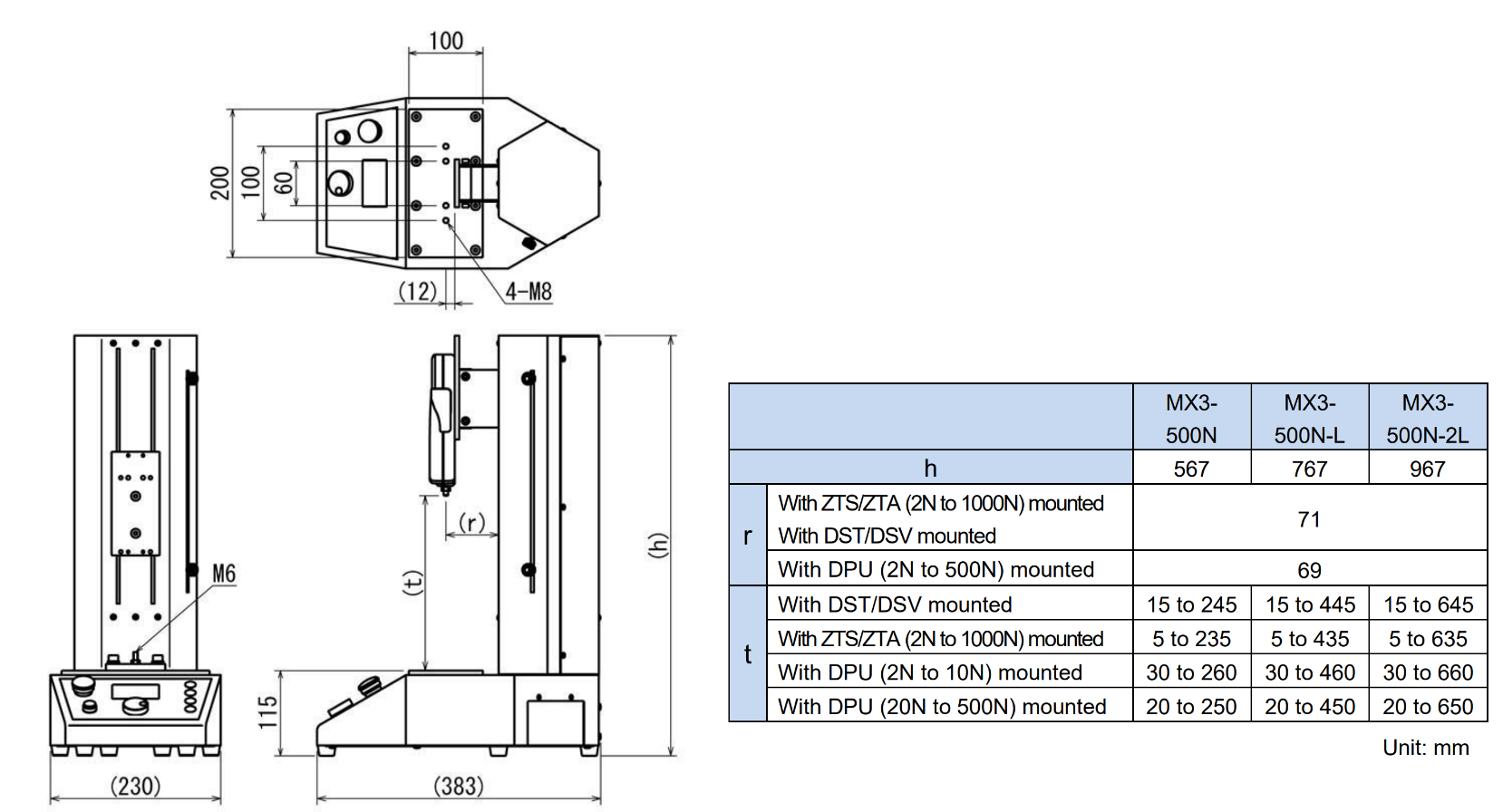 | [Force Gauge] Force-measuring instruments for compression/tension force measurements. Mounted to the test stand head with included bolts. |