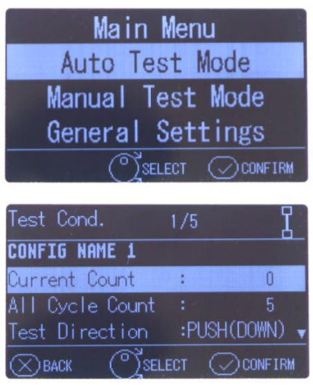 [Auto Test Mode] ■ Speed Settings for Auto Test Mode [Manual Test Mode] |