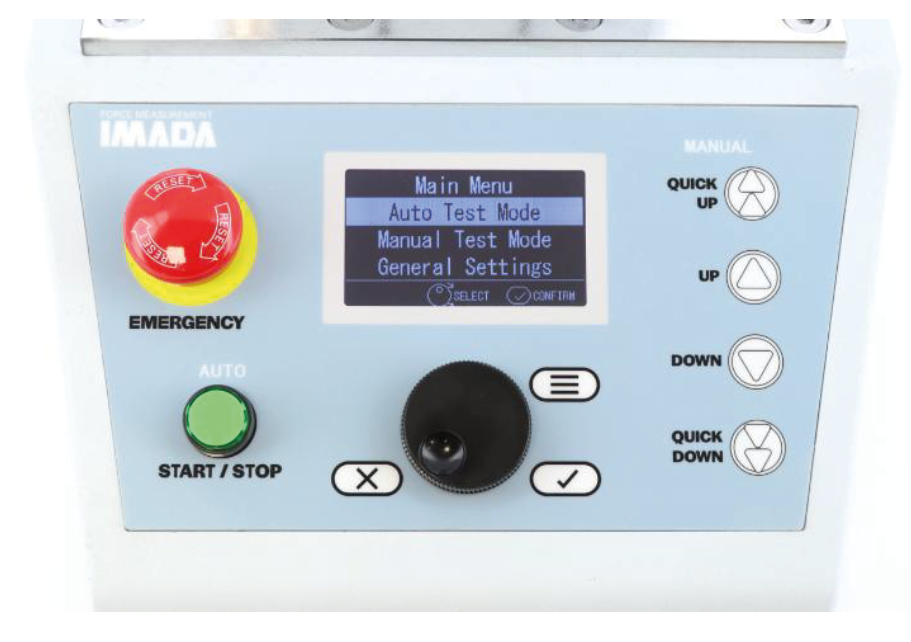 Supporting Functions for Higher Operability and Safety - Easy Stroke Limit setting with adjustable Knobs - Buttons for moving the head up/down manually at a set or max. speed - Trigger signal sent at the start/end of the test (*2) - Lock function to lock settings with a password |