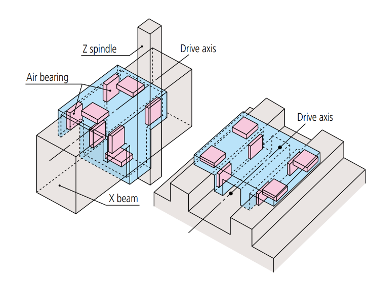 มีการพ่นเคลือบเซรามิกบนพื้นผิวเลื่อนของ รางแกน Y, คานแกน X, แกนหมุนแกน Z เพื่อให้เหมาะกับการทำงานแบบแบริ่งลมความแม่นยำสูง และให้ความทนทานต่อการกัดกร่อนยอดเยี่ยม