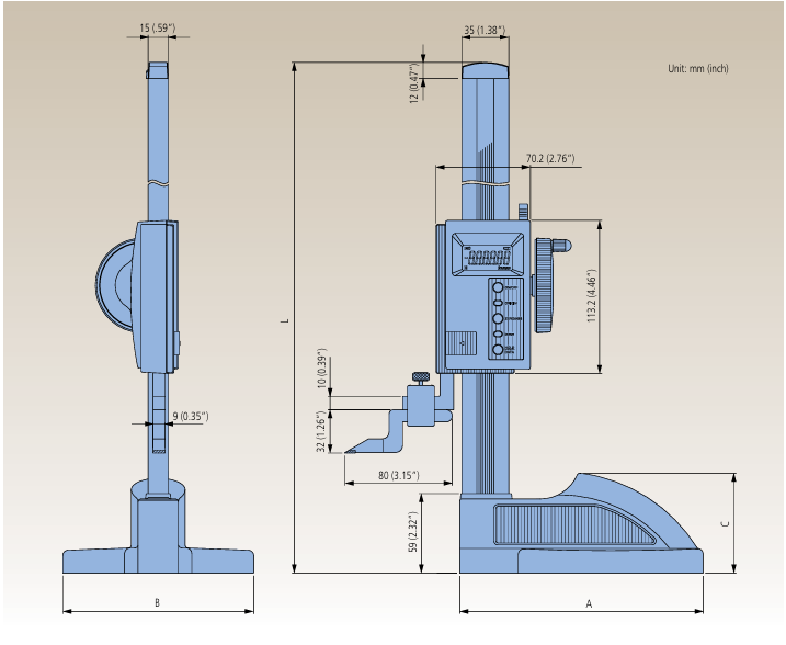 • Smooth up/down displacement is ensured with the slider feed wheel identical with that of proven double-column height gages.