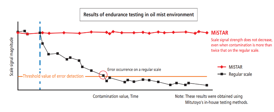 A newly developed environment-resistant absolute scale having more than twice (in-house comparison), the contamination resistance of conventional models has been adopted, together with linear guides on the moving elements. The use of linear guides in place of air bearings eliminates the need for compressed air and eliminates contamination failure from the air source or the environment.