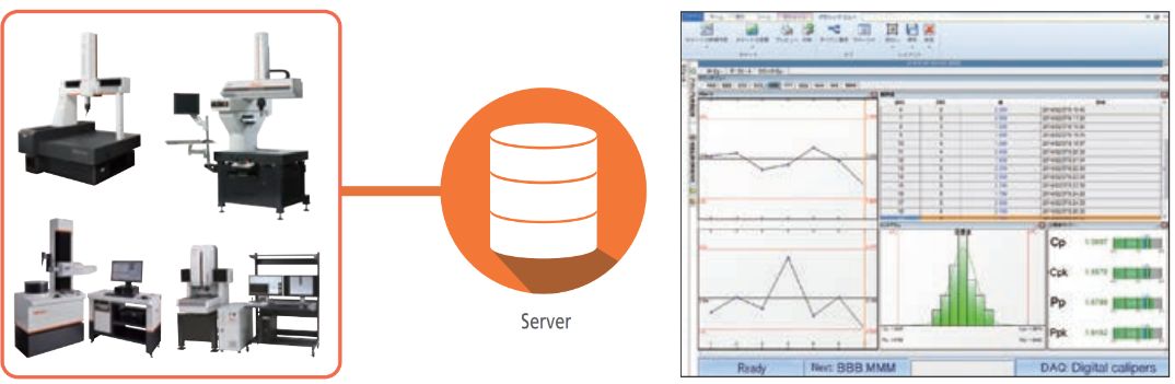 “Visualization of quality” by collecting and accumulating measurement data from networked measuring machines, and then statistically processing this data on a server in real time helps to reduce defective products.