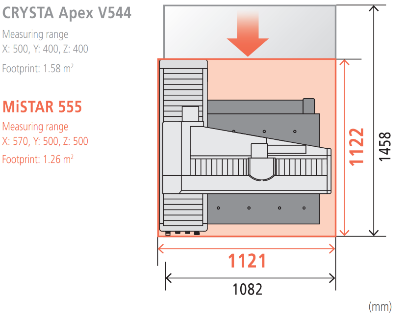 Cantilever architecture used to open the measurement area on three sides is the result of redesigning the measuring machine body design, starting from its material quality. Compared with a bridge or gantry design, it makes moving workpieces on and off the measuring table significantly easier. The user-friendliness of MiSTAR 555, enabled by being open on three sides, can be seen especially on shop floors and the like where workspace is often limited.