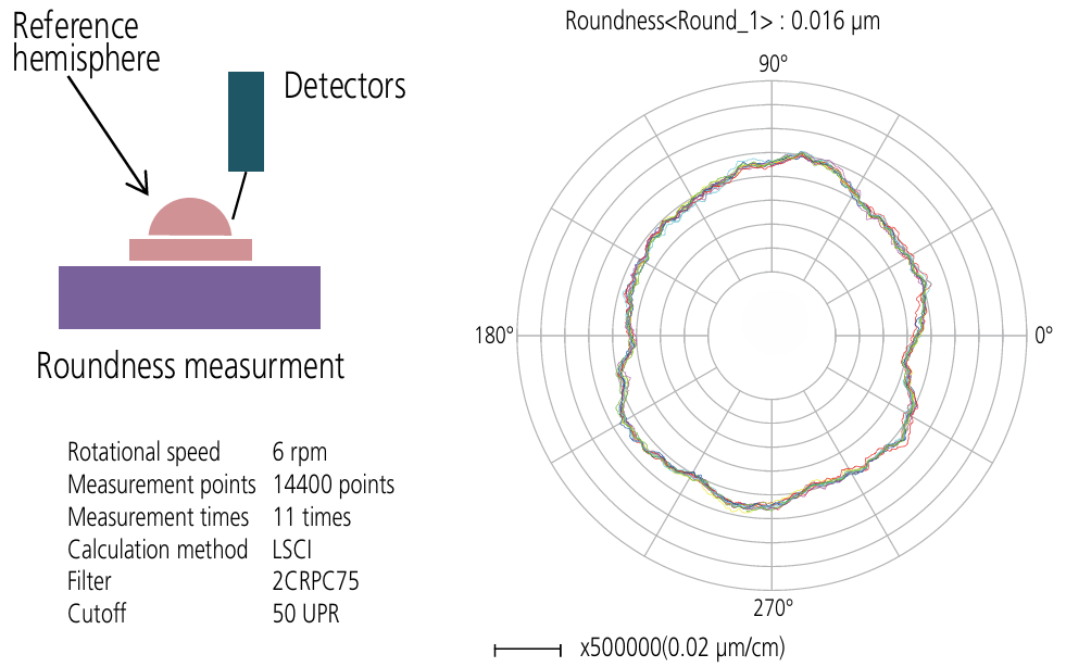 Result of repeating roundness measurement 11 times on reference hemisphere
