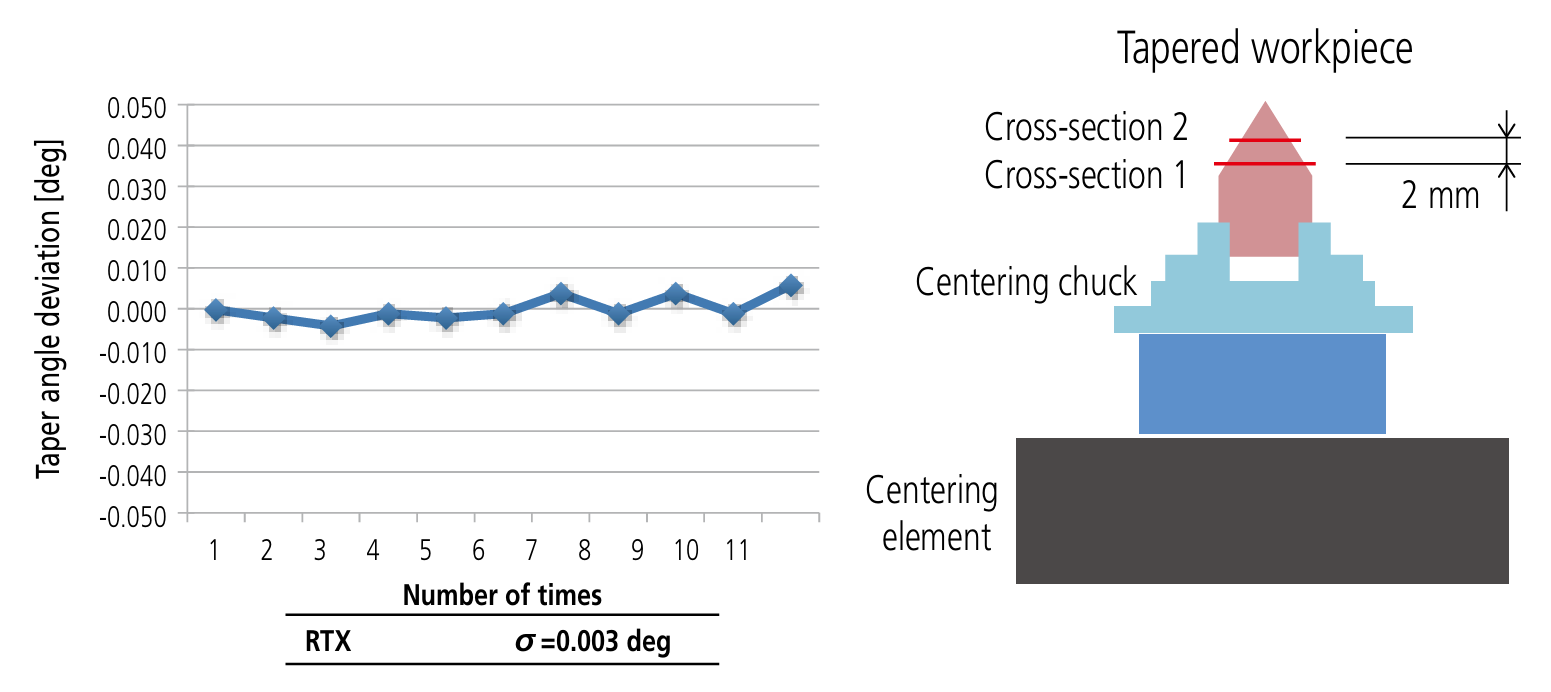 Repeatability of tapered workpiece measurement