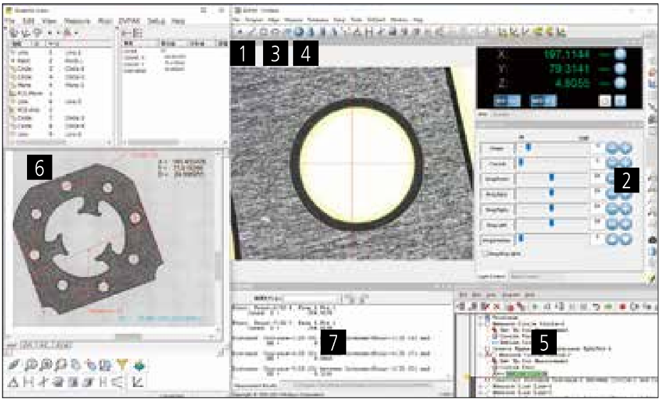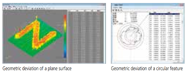QVGraphics A simple operation, just clicking a measurement graphic element shown in the graphic window enables coordinate creation/change, combination arithmetic operations, and geometric deviation illustration of roundness, flatness, and more.A useful function is automatic creation of a measurement program just by dragging a pitch measurement element.