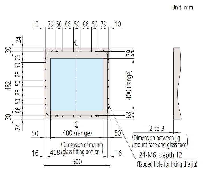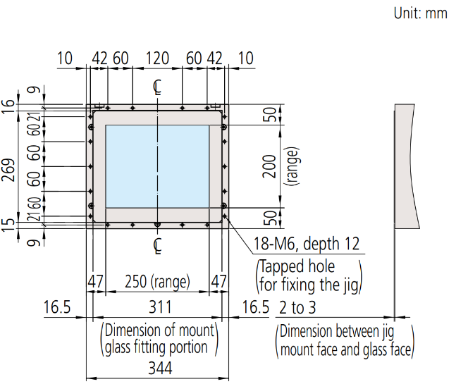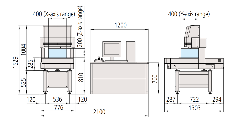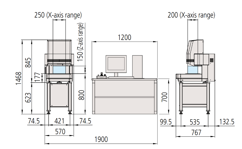 External dimensions and measurement stage dimensions