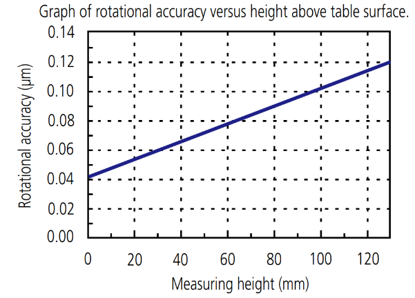 Despite being a low-priced model, the turntable with air bearings offers rotational accuracy as high as (0.04+6 H/10000) μm, thus assuring a precision that compares well to that of high-end models.