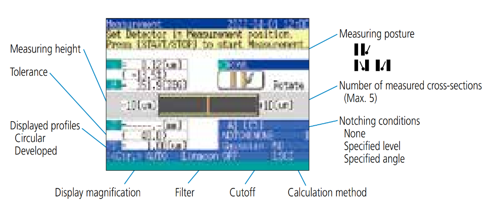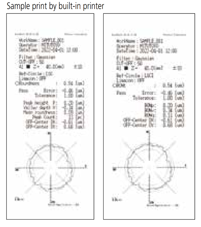 | High-precision air bearings provide highly accurate measurement | Measurement results can be sent to the built-in printer or exported for external processing and storage | |