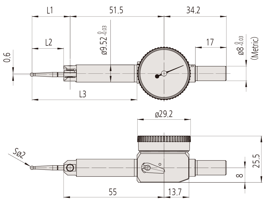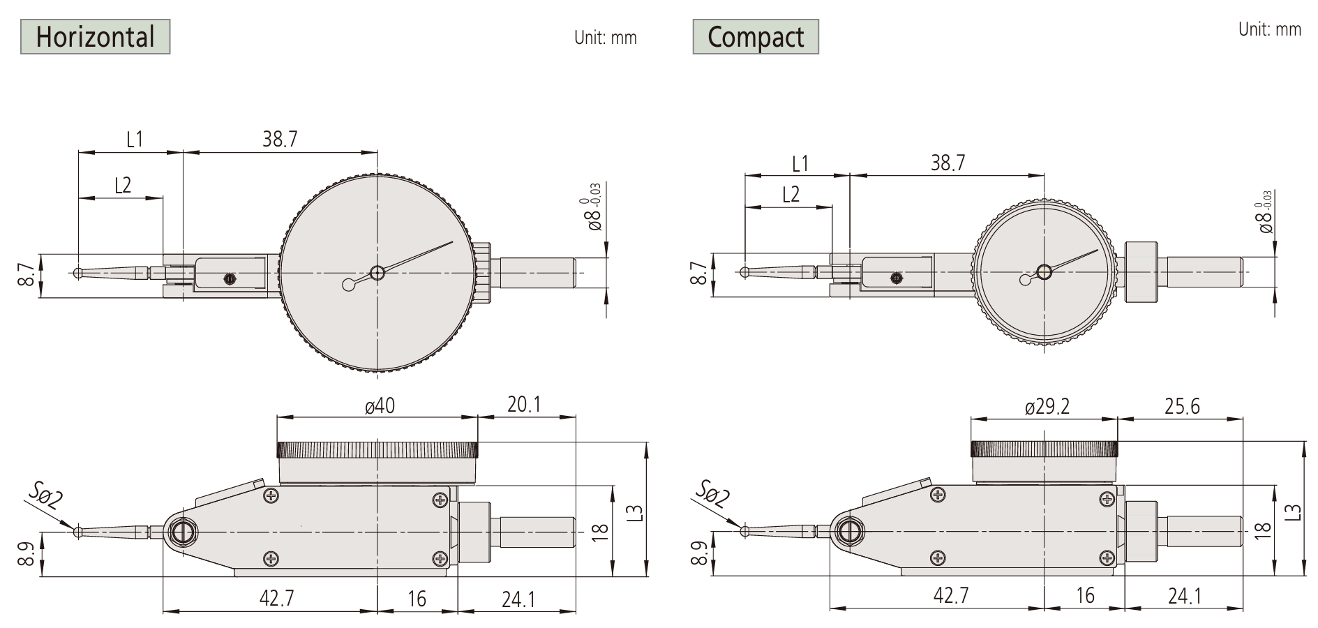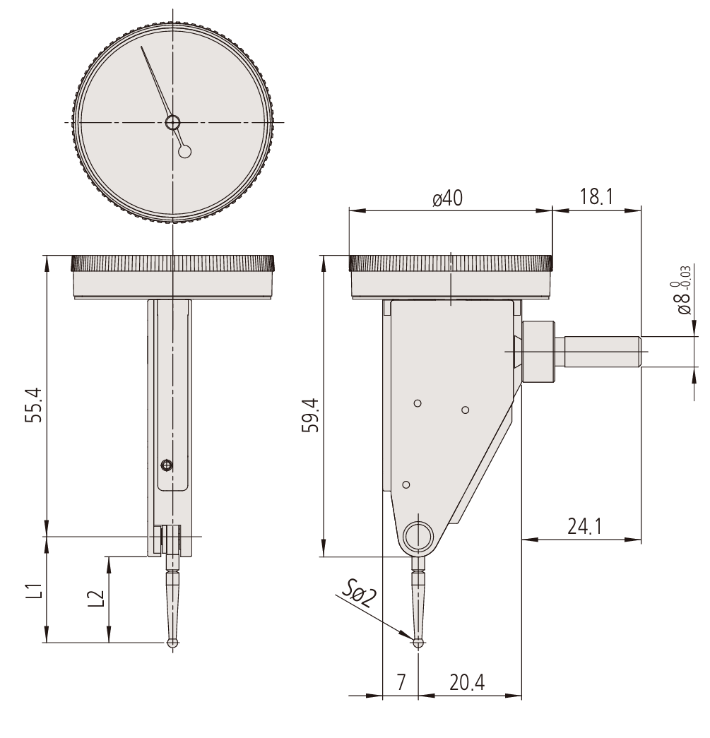 | Improved contact point bearing gives smoother tracking | Extended contact point length for 0.001 mm, 0.002 mm, and 0.0001 in graduation models | |