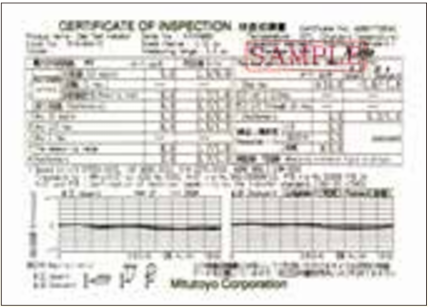 - A "Certificate of Inspection" is provided with Dial Test Indicators.