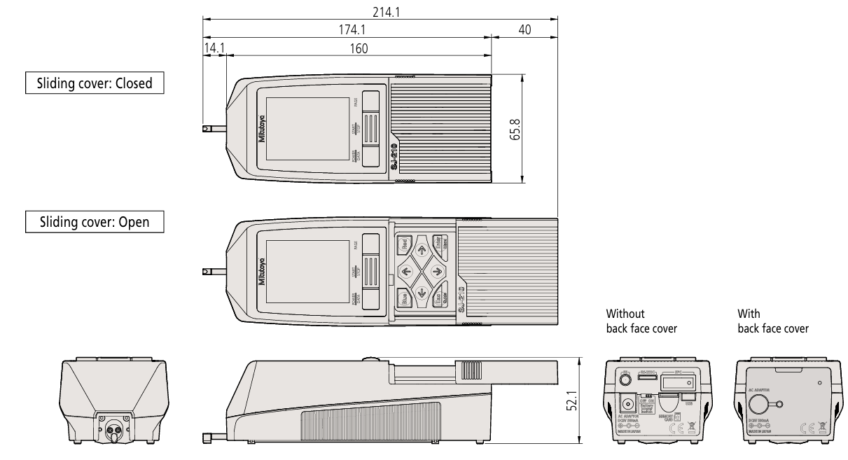 Assessed profiles and calculation results and curves can be printed out by connecting the SJ-210-dedicated printer, which is palm sized (W×D×H: 93×125×70 mm) and can run on an internal battery.