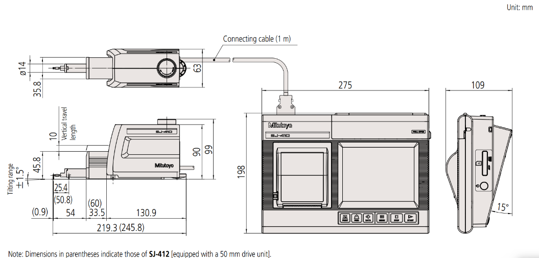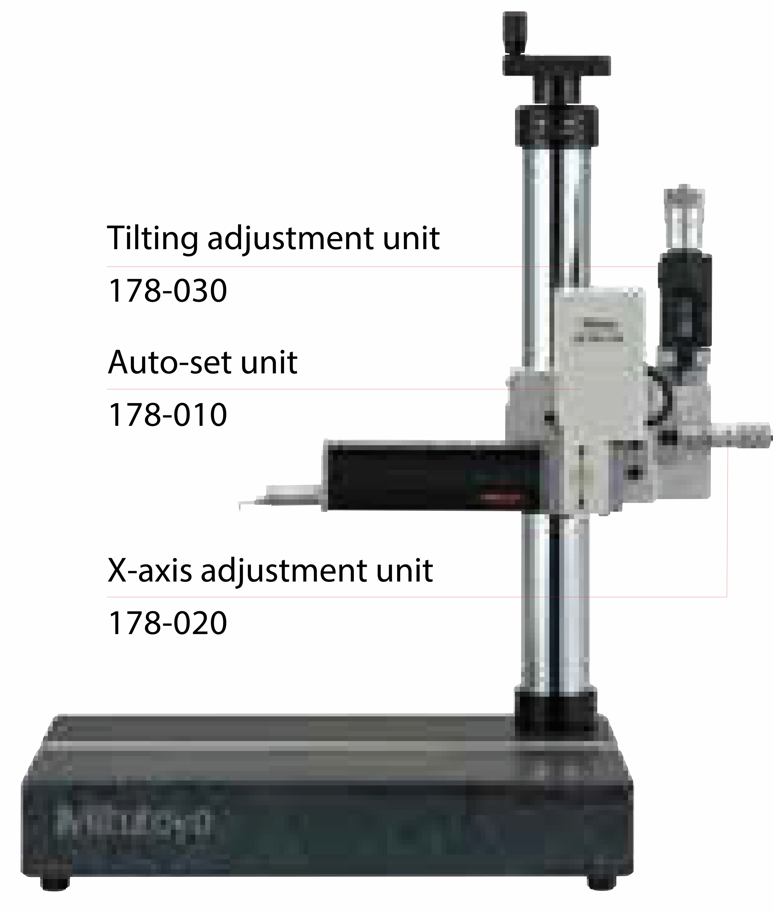 * This is an optional accessory for the SJ-410 Series. It can only be used on the simple column stand (optional accessory, order No. 178-039). When the units are used in combination, straightness for SJ-411/412 drive unit will be degraded about 0.2 µm. Cannot be used when the tester’s main unit is an older model (SJ-401/402)
