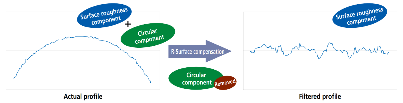 Usually, a spherical or cylindrical surface (R-surface) cannot be evaluated, but, by removing the radius with a filter, R-surface data is processed as if taken from a flat surface