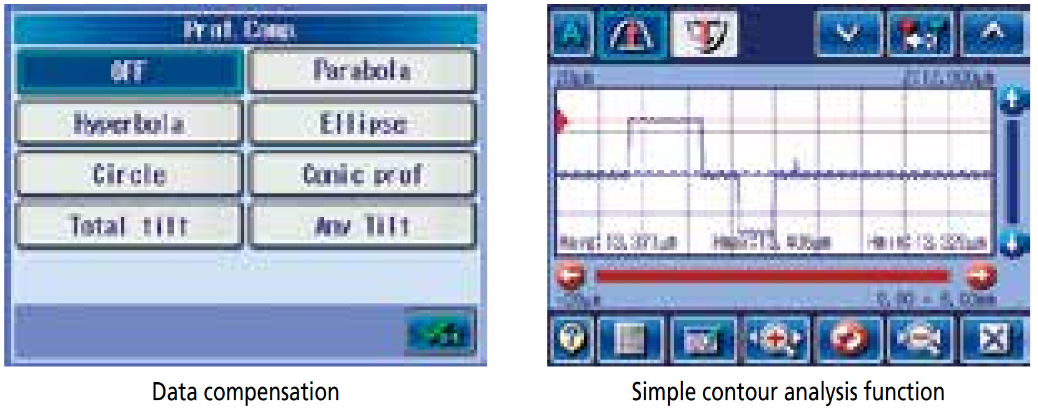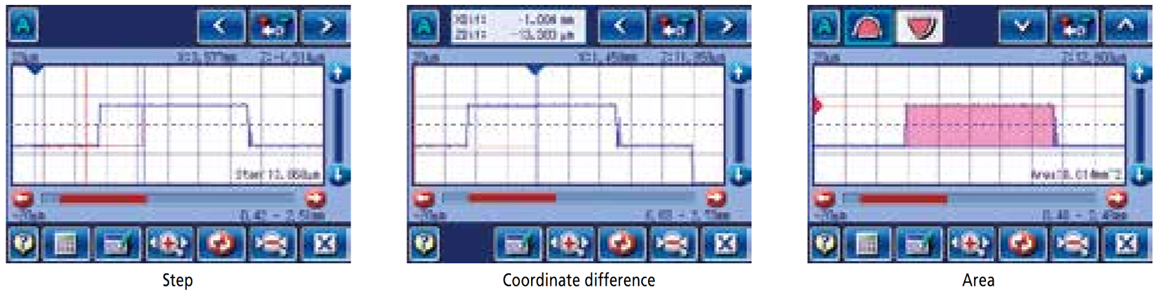 Point group data collected for surface roughness evaluation is used to perform simplified contour analysis (step, step height, area and coordinate difference). It assesses minute forms that cannot be assessed by a regular contour measuring machine.