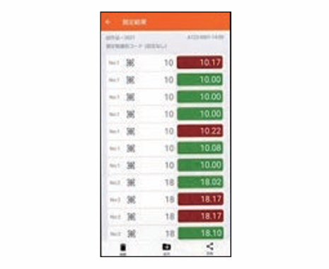Images and text can be used to build a clear step by step measurement procedure. The app guides you how to measure and also shows you GO/NG judgment. |