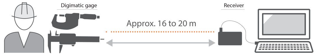 Note:Receiver not necessary when using with Mitutoyo Bluetooth® U-WAVE fit