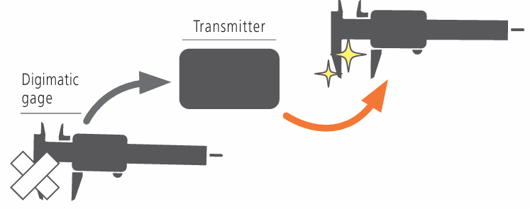 Solution No high initial investment required because U-WAVE can be inexpensively connected to your existing Digimatic gages. No need to purchase replacements. |