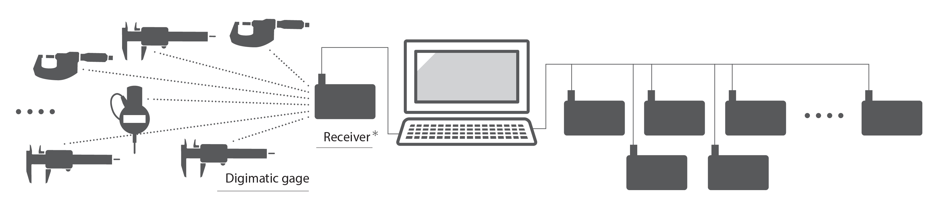 This is a system that transmits data from Mitutoyo Digimatic gages to software such as Excel or Notepad via wireless communication.It saves time and eliminates misinput, helps achieve cost reductions and better efficiency while maintaining excellent operability.