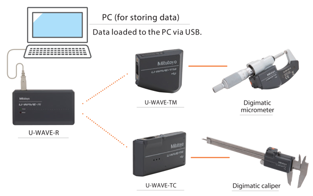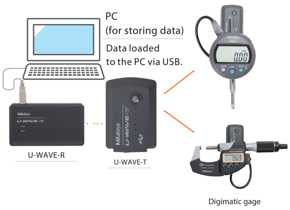 1.U-WAVE Comprises of a receiver (U-WAVE-R) that connects to a PC and a transmitter (U-WAVE-T) that connects to a Digimatic gage |
