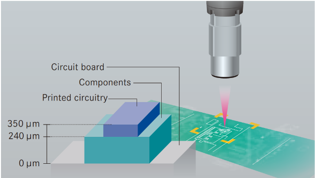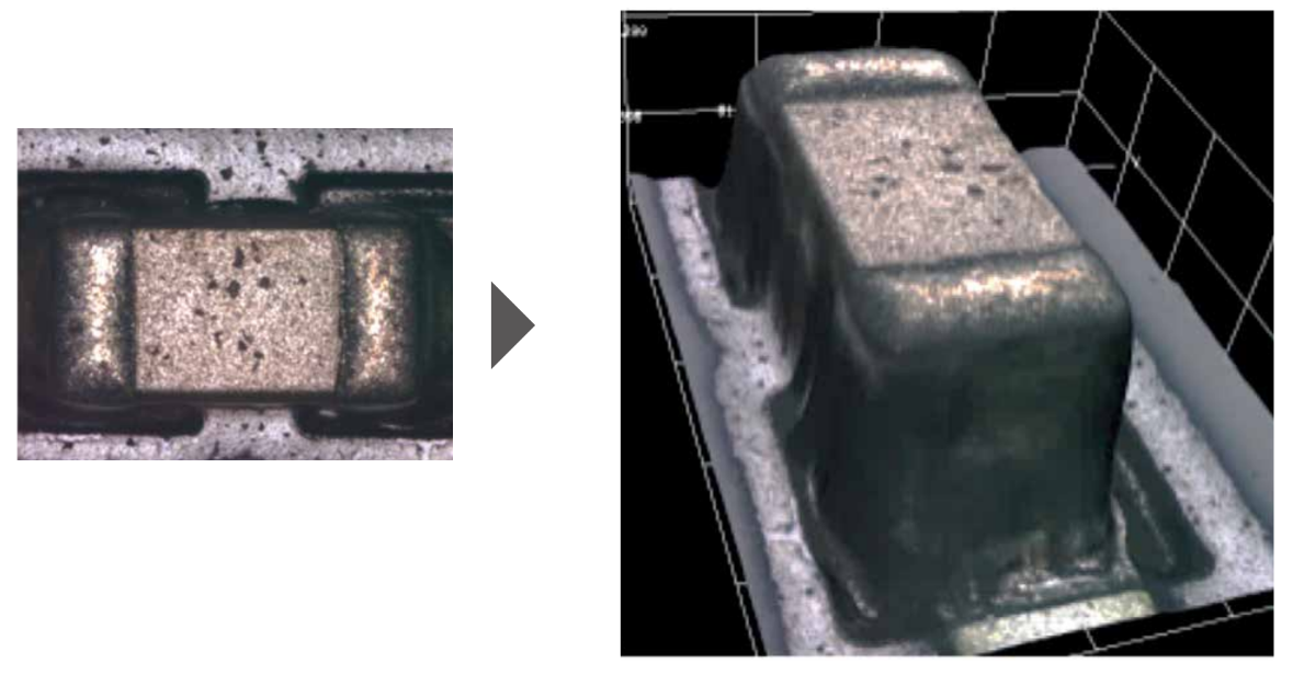 Problem ・ Inspection time for electronic and precision parts, etc., needs to be reduced. Solution ・A large depth of focus even in a high-magnification observation eliminates the need for focus Proposed Functions ・EDOF ・Auto Focus |