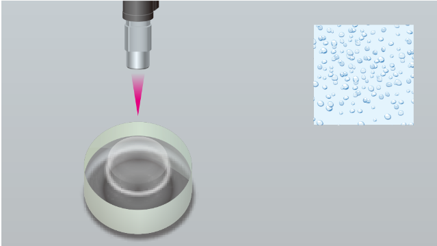 Example: Observation of minute bubbles in glass / liquid Absolutely allows observation of target objects with a large depth of focus. |