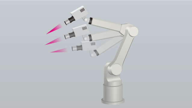 Problem ・It takes time to observe a workpiece from various angles with the camera mounted on a robot arm. Solution ・The large depth of focus eliminates the need for focus adjustment and allows observation from various angles, thus contributing to time-saving of observation. Proposed Functions ・EDOF ・Multi Focus ・Mixed Image |