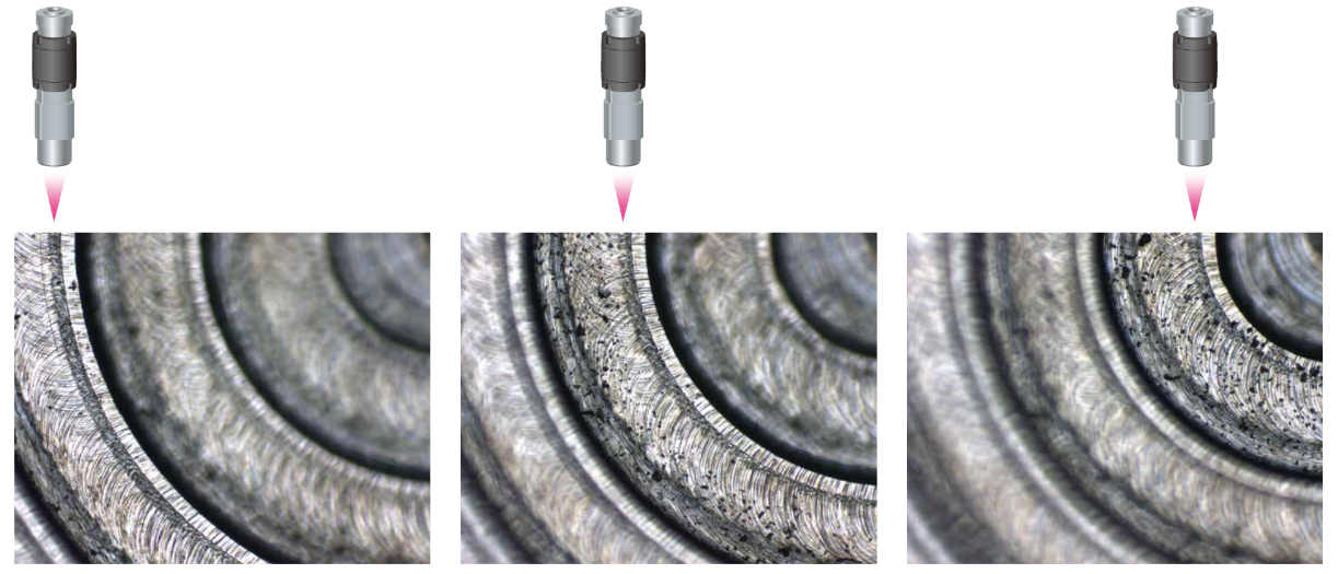 Example: Semiconductor flaw inspection Eliminates the need for focus adjustment, thus achieving effective inspection. |