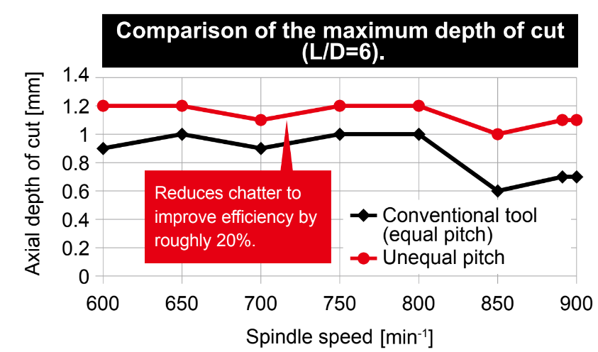 Adopts unique unequal pitch method to reduce chattering during cutting.