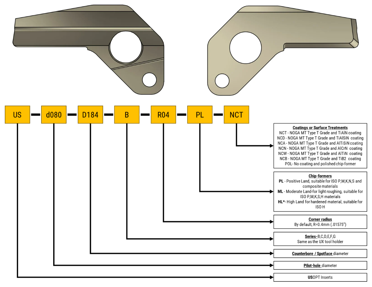 - โซลูชันที่ปรับแต่งได้: ทูลโฮลเดอร์รุ่น UX รองรับการกำหนดสเปกเฉพาะด้วยเม็ดมีด USPOT และ UCHAMF โดยสามารถเลือกการเคลือบผิว ตัวหักเศษ รัศมีมุม และตัวเลือกอื่น ๆ ได้ตามต้องการ