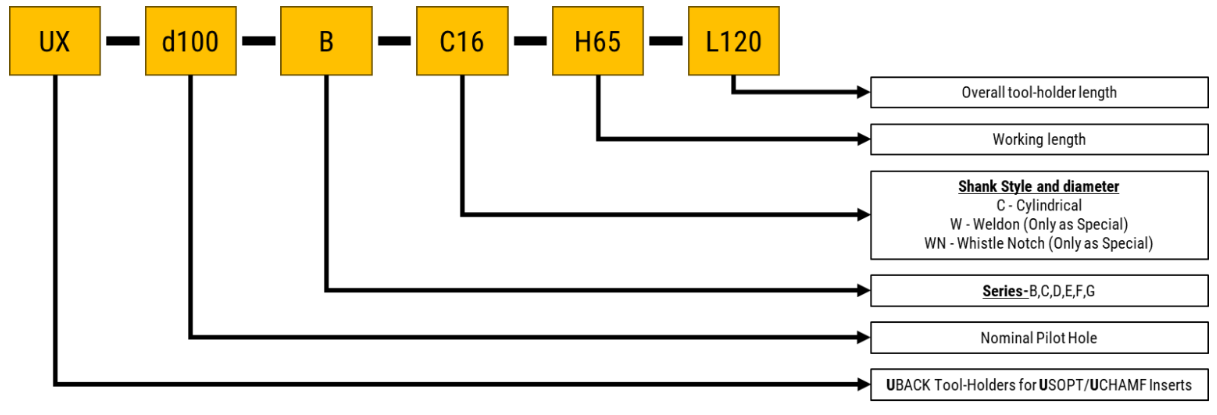 ทูลโฮลเดอร์ UBACK รุ่นมาตรฐาน พร้อมเม็ดมีด USPOT (mm)