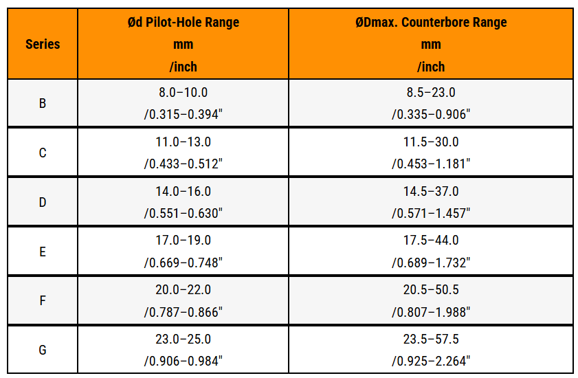 ไลน์ผลิตภัณฑ์ UBACK ถูกจัดแบ่งออกเป็นซีรีส์หรือกลุ่มต่าง ๆ โดยแต่ละซีรีส์ได้รับการออกแบบให้เหมาะสมกับช่วงขนาดรูนำ (Pilot Hole) ที่แตกต่างกัน เพื่อให้ได้ประสิทธิภาพและความแม่นยำสูงสุดในการใช้งาน