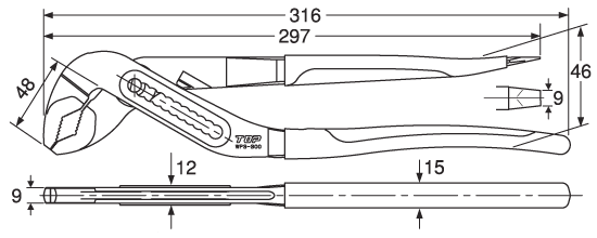 THREE LAYERS WATER PUMP PLIERS(With slotted screwdriver)• The three-layers structure prevents backlash and grasps strong. • The rhombus-shaped jaw can be tightened firmly without sliding the pipes etc. • The jaw processed a high-frequency induction hardening, excellent for abrasion resistance. • Suitable for attaching and detaching water pipe, gas pipe, and air pipe. |