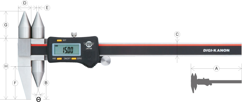 ● Since one unit of this caliper allows measurement of center distance of holes and distance between edge face and hole through direct reading, the product eliminates the need for preparing two units for two types of measurement, resulting in convenient use.
