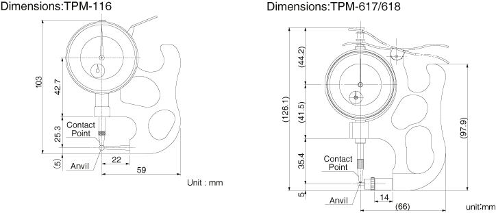| TPM-618 | 0.01 | 10 | ±15 | - | 0-50-100 | 1.5 or less | φ1.6 Ball | φ5.0 (φ7.0,10.0) replaceable* | 195 |