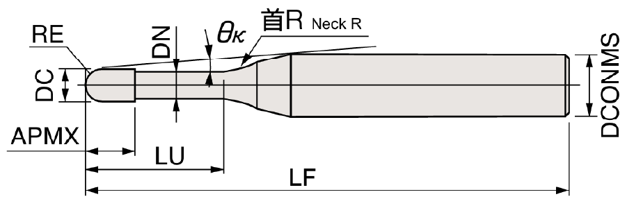 勾配角に対する実有効首下長 Effective under neck length with respect to draft angle |