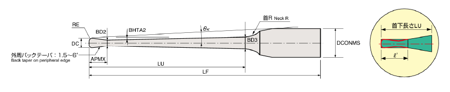 勾配角に対する実有効首下長 Effective under neck length with respect to draft angle |