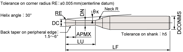 | Tool dia. | Corner radius | Under neck length | Flute length | Neck dia. | Overall length | Shank dia | Neck R | ||||||||