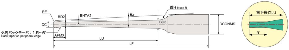 Neck angle | Flute length | Neck dia. | Under Neckdia. | Overall length | Shank dia | Neck R |