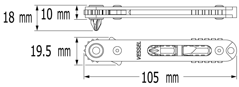 • Flat-shaped Ratchet Screwdriver (Straight type) • Bit Ph No.1, No.2, Slotted 6 x 18mm |