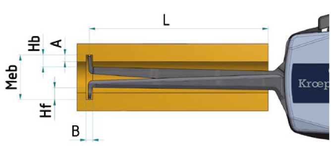 Meb Measuring range A Groove depth B Groove width Hb Measuring contact movable Hf Measuring contact fixed L Measuring depth |
