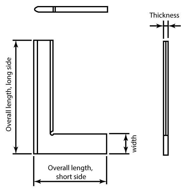 | Overall length, long side | Overall length, short side | Width | Thinkness | |||